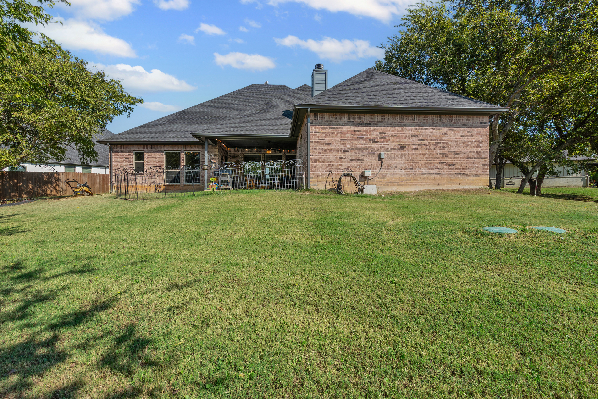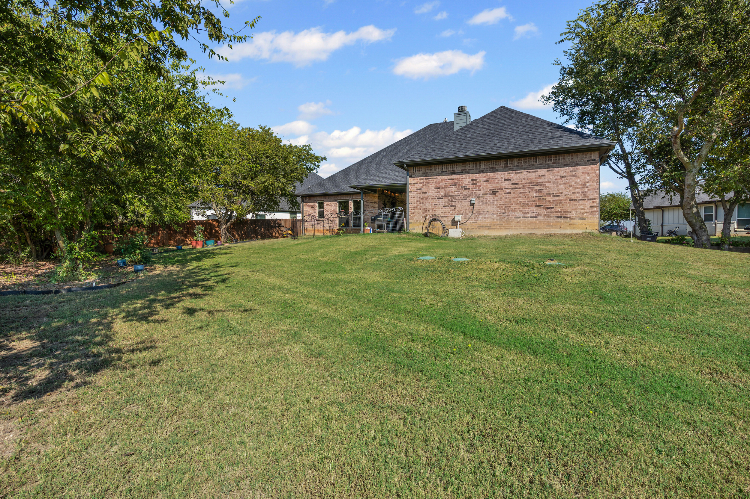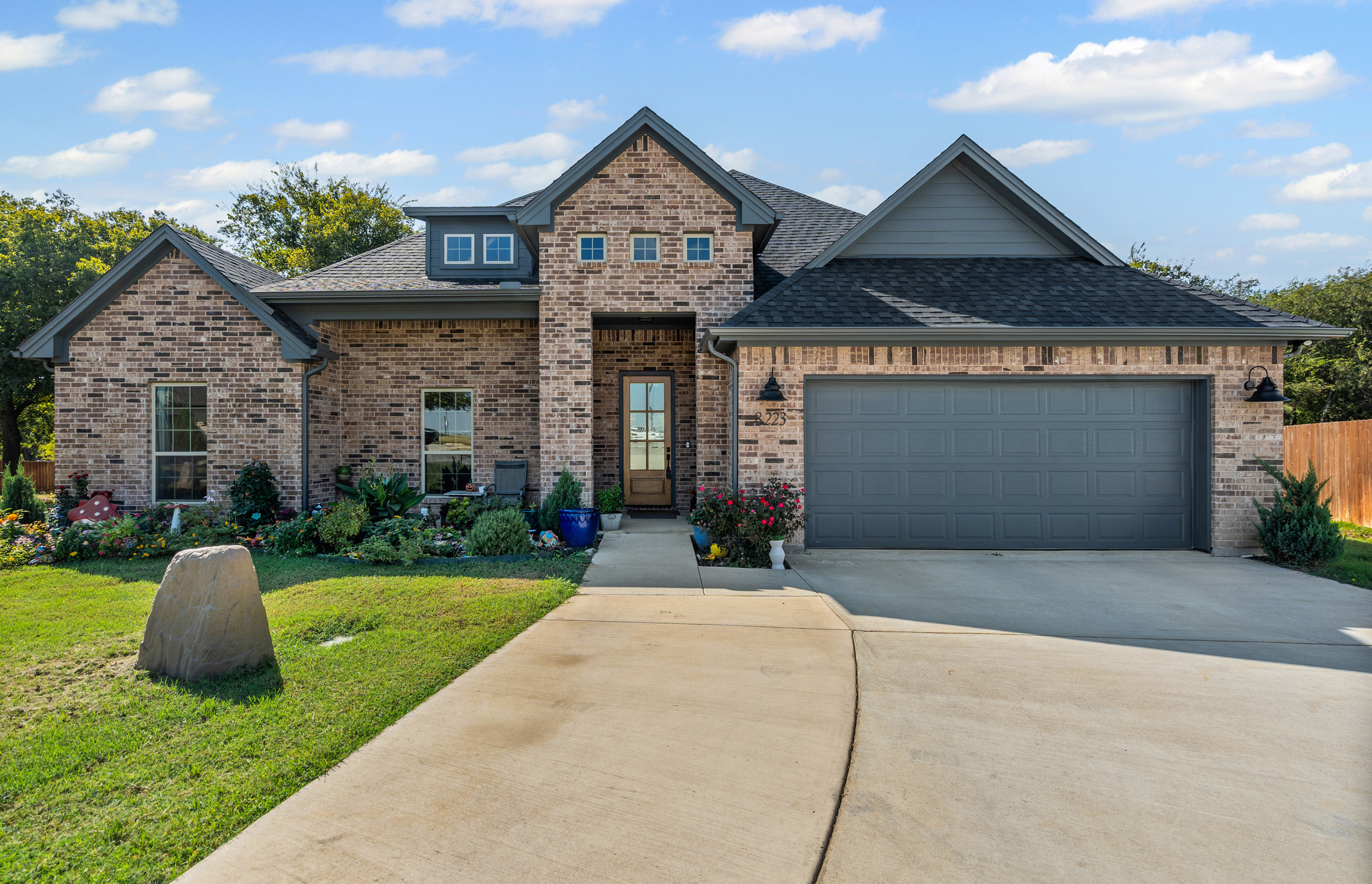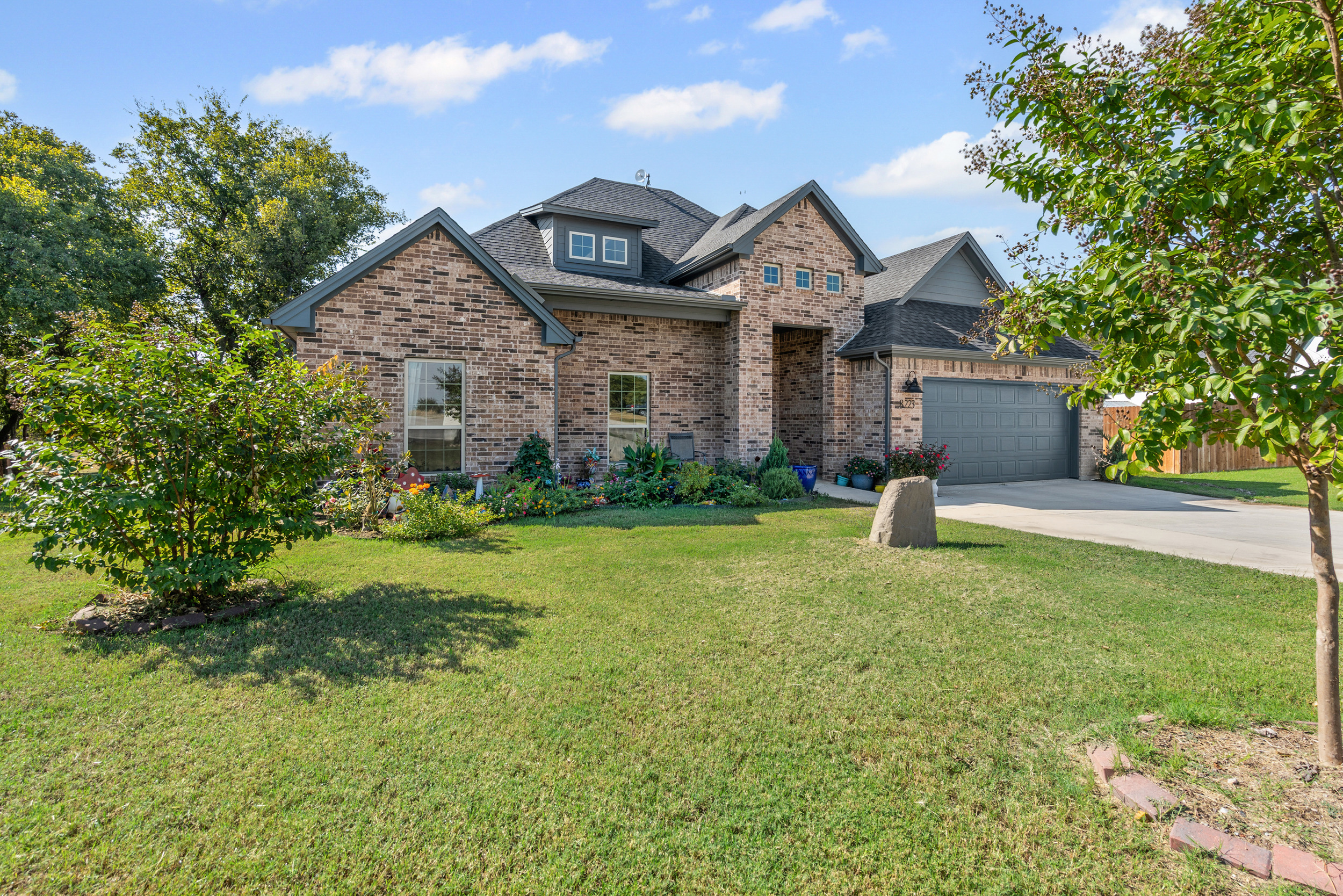 Welcome to 8223 Loar Court, this home is located in the terrific and growing neighborhood, Pyramid Acres! Built by Capstone Homes, 8223 Loar Court sits on over a third acre lot. After you arrive in the private cul-de-sac, this home greets you with its great curb appeal and with its farmhouse and craftsman style architecture. Upon entry, you’ll see the large great room with a quiet office or 4th bedroom on the left. 8223 Loar Court hosts an open floor plan with the dining, kitchen and living room seamlessly blended together with a wall of windows overlooking the greenbelt outside. The kitchen is quite large with a huge island! The Master Suite is discretely tucked away in the back of the home adding a nice private touch with the generously sized en suite Master Bathroom. The secondary bedrooms are located towards the front of the home with their own bathroom and large closets. When you go outside in the you’ll see the second fireplace and great covered patio. One of the biggest highlights of this home is the lot that it sits on! On top of being over a third of an acre, in a cul-de-sac, this home also backs up to a secluded greenbelt making the lot feel even more expansive! Pyramid Acres is a great community that EXCLUDES an HOA. Located off 377, it is far enough from the city to feel secluded but close enough for convenience to Benbrook and Fort Worth! This is a great home that you don’t want to miss!