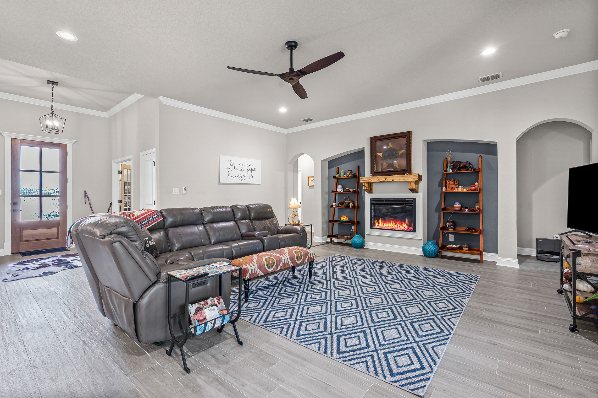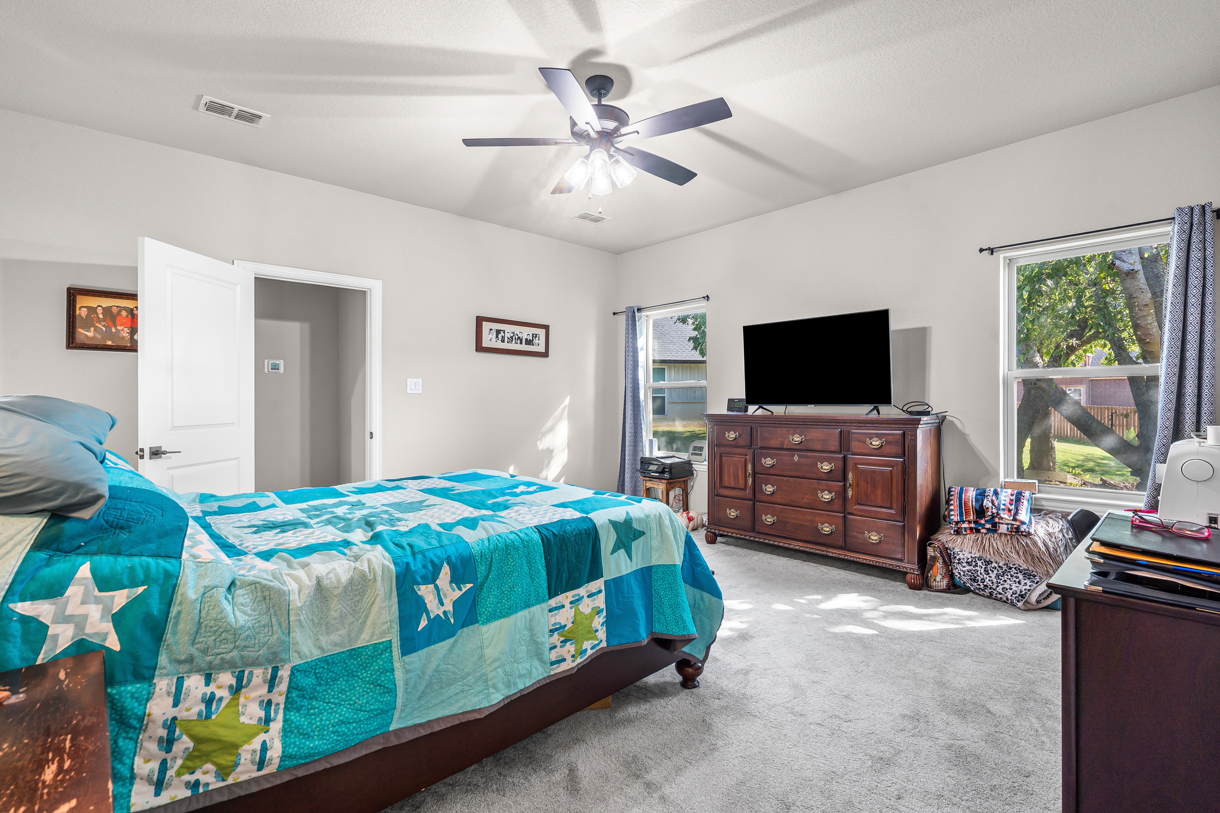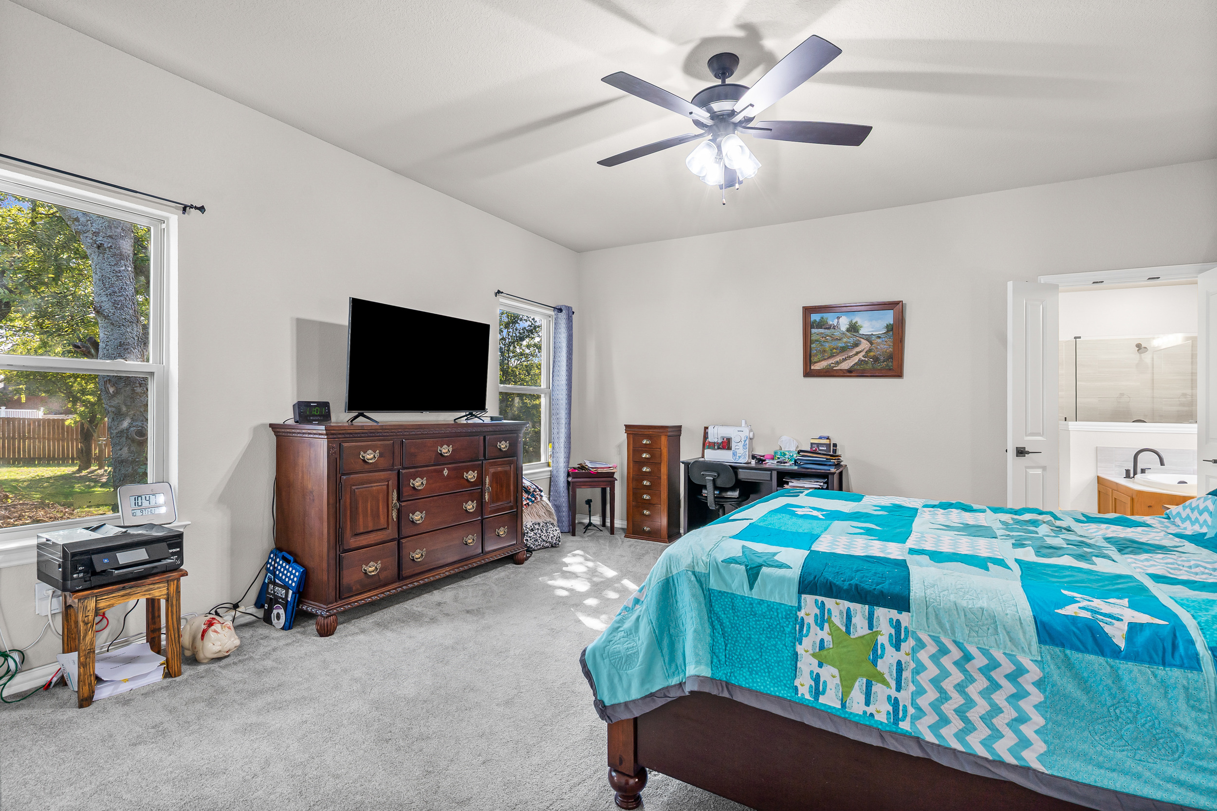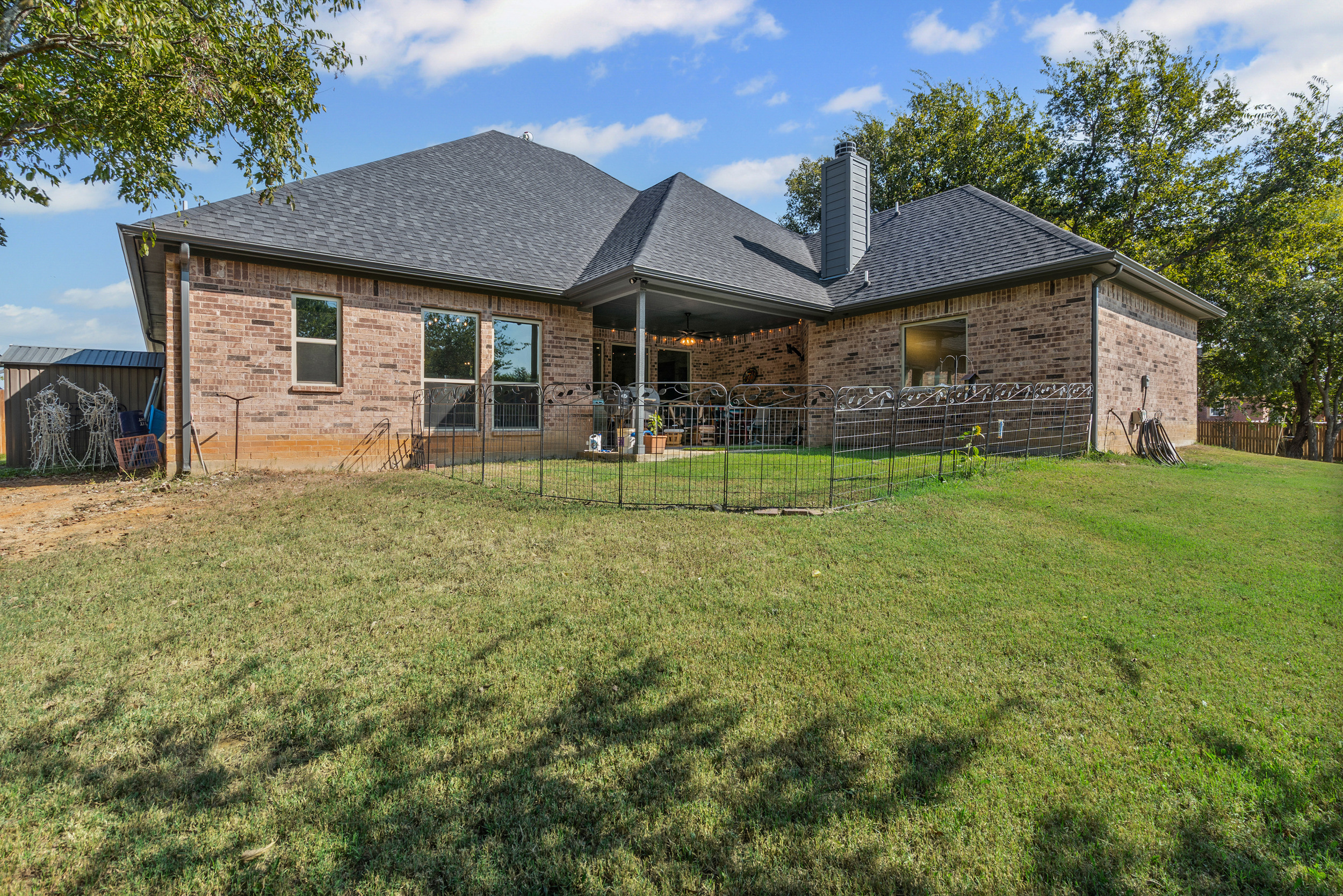 Welcome to 8223 Loar Court, this home is located in the terrific and growing neighborhood, Pyramid Acres! Built by Capstone Homes, 8223 Loar Court sits on over a third acre lot. After you arrive in the private cul-de-sac, this home greets you with its great curb appeal and with its farmhouse and craftsman style architecture. Upon entry, you’ll see the large great room with a quiet office or 4th bedroom on the left. 8223 Loar Court hosts an open floor plan with the dining, kitchen and living room seamlessly blended together with a wall of windows overlooking the greenbelt outside. The kitchen is quite large with a huge island! The Master Suite is discretely tucked away in the back of the home adding a nice private touch with the generously sized en suite Master Bathroom. The secondary bedrooms are located towards the front of the home with their own bathroom and large closets. When you go outside in the you’ll see the second fireplace and great covered patio. One of the biggest highlights of this home is the lot that it sits on! On top of being over a third of an acre, in a cul-de-sac, this home also backs up to a secluded greenbelt making the lot feel even more expansive! Pyramid Acres is a great community that EXCLUDES an HOA. Located off 377, it is far enough from the city to feel secluded but close enough for convenience to Benbrook and Fort Worth! This is a great home that you don’t want to miss!