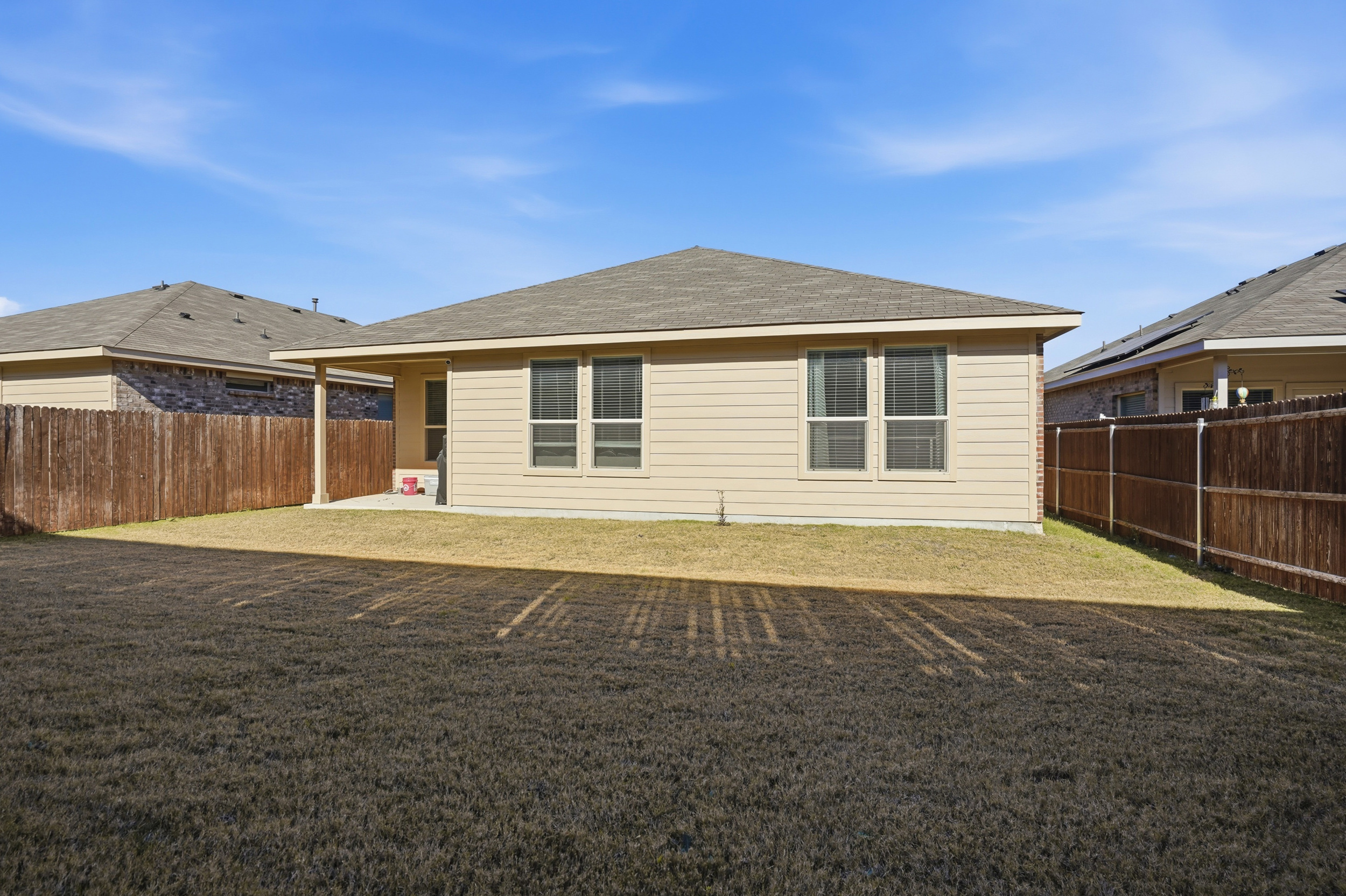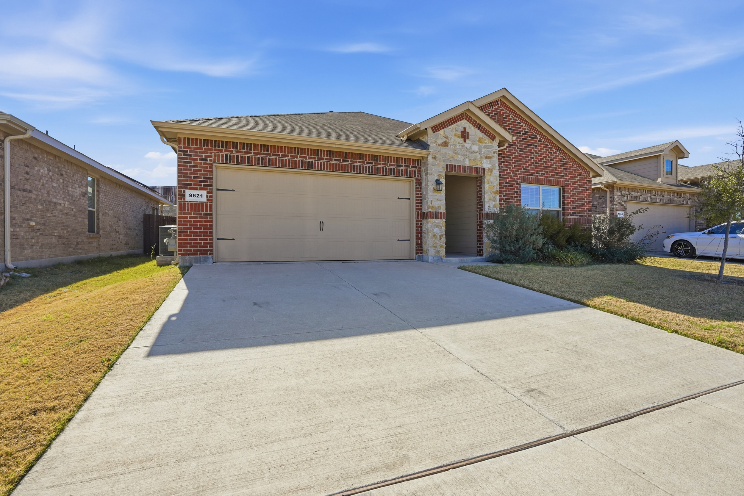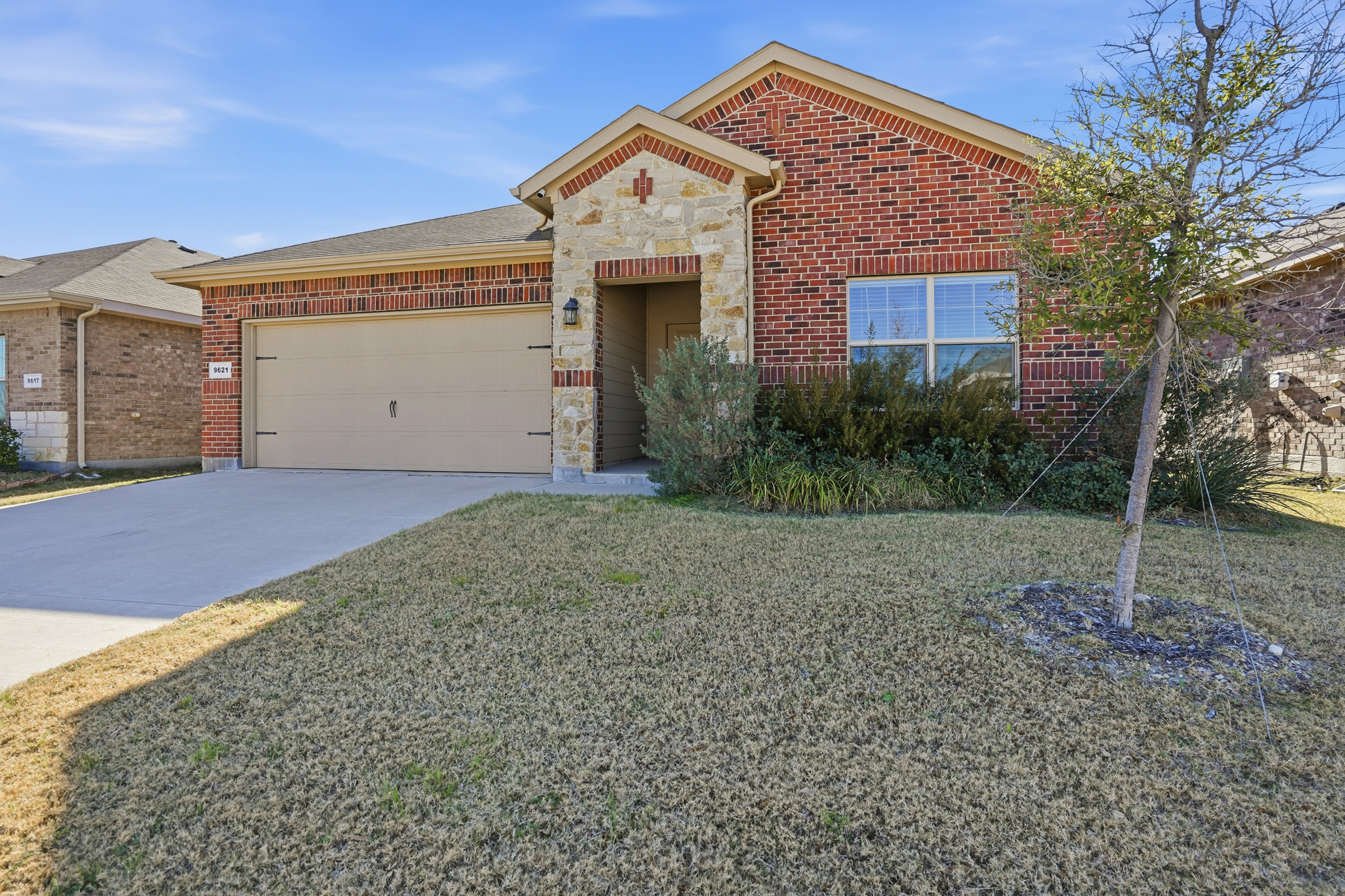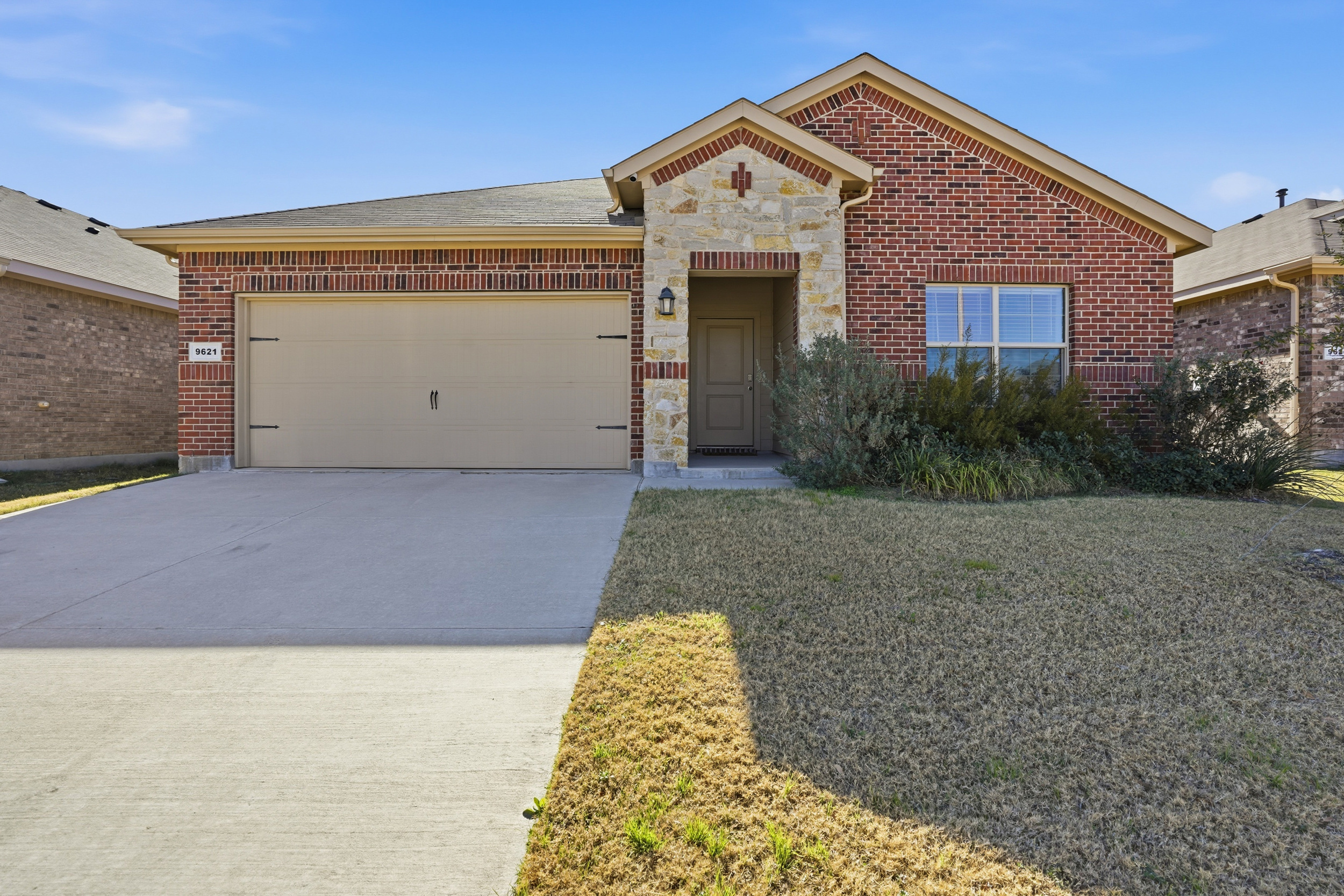 Spacious, beautiful 2023 D.R. Horton home featuring a large chef’s kitchen with granite countertops, stainless steel appliances, gas range, seating island, with updated farm sink and light fixtures plus a walk-in pantry. Split-bedroom layout with a private primary suite offering dual sinks, oversized shower, and walk-in closet. Tiled entry, hallways, and wet areas plus smart home technology throughout. Enjoy a covered front porch and back patio, fenced backyard, gas tankless water heater, gutters, and full sprinkler system. Community amenities include a large pool, cabana, and playground. Minutes from DFW Airport, downtown Fort Worth, shopping, dining, and more!